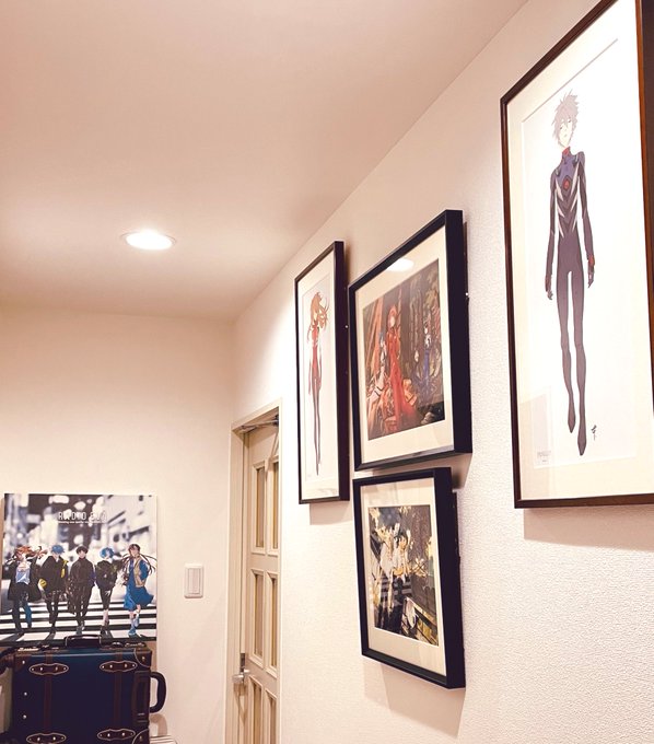 いつか自宅廊下をエヴァ原画絵でギャラリーみたいにしたかったので廊下が広いとこを選んでから2年… 念願のギャラリー風にできました!😭