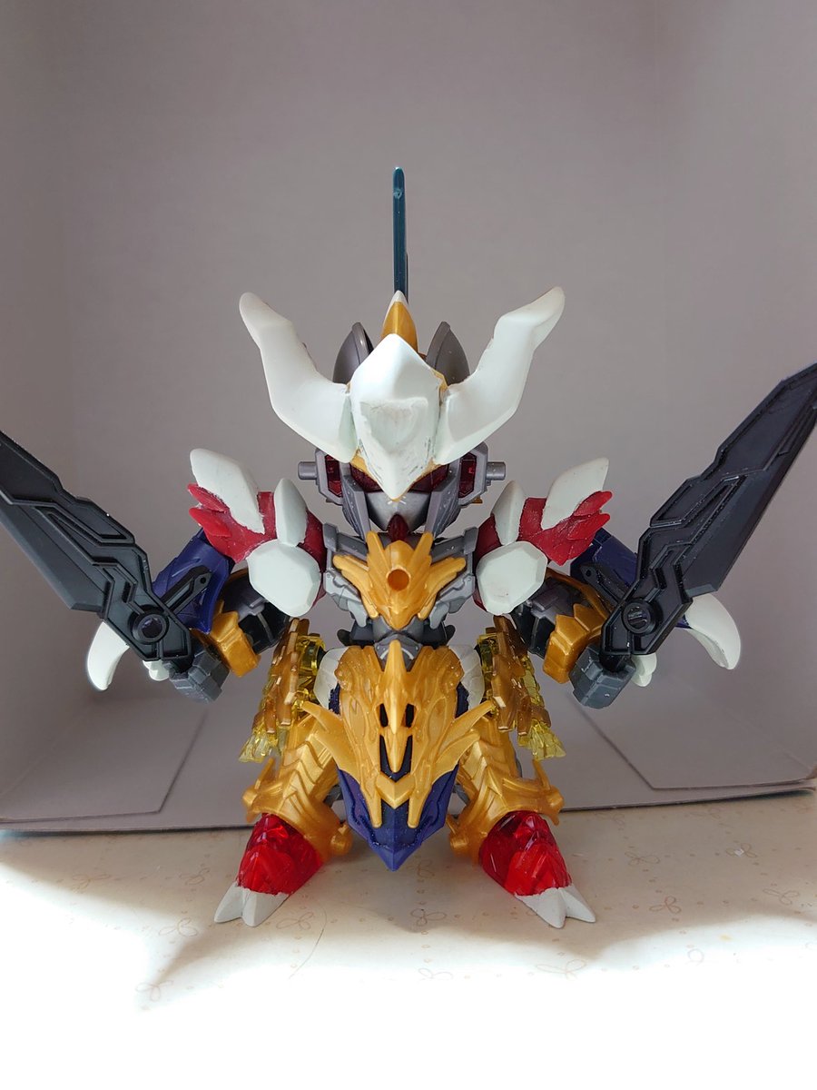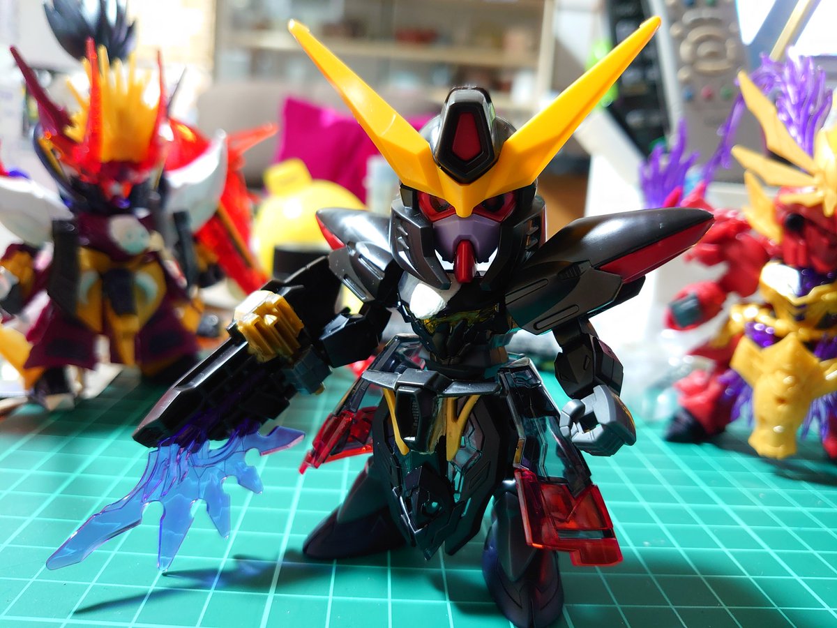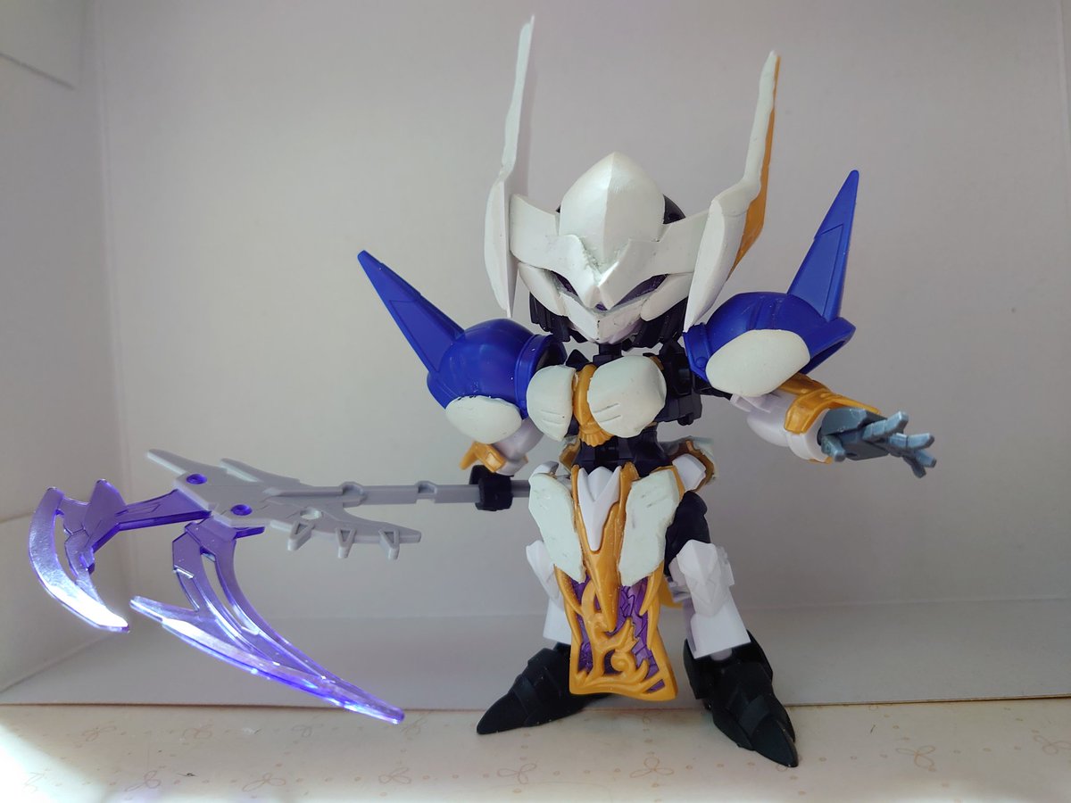 郭嘉ブリッツたん、BB戦士ブリッツの頭部乗っけて、武装はBBブリッツのトリケロスに貂蝉クシャトリヤの武器、孫堅アストレイの剣の柄を組み合わせてデバイス化してます~くふふ、なかなかのショta…可愛さなのでは? #三国創傑伝 #ガンプラ好きと繋がりたい #俺SD作ってるぜ