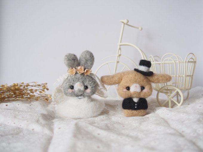 ジューンブライド ということで、ウェルカムドールのうさぎさんたちです♪ お迎え先が決まったら、 ウェルカムスペースで沢山の人を笑顔にして欲しいものです✨ #ハンドメイド好きさんと繋がりたい #羊毛フェルト