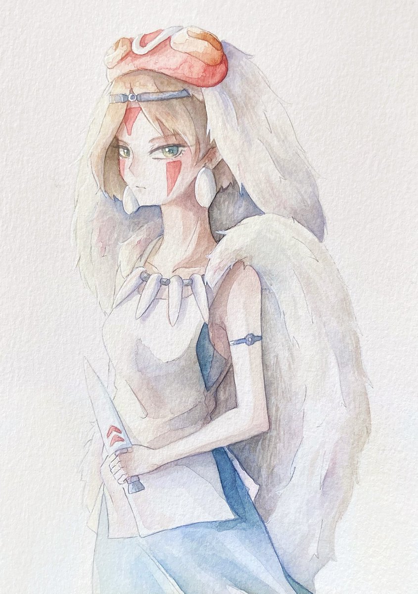 森の戦士 Warrior of the Forest #PrincessMononoke #もののけ姫 #San #サン #watercolor #水彩 #イラスト #illustration #お絵描き #2次創作 #ghibli #StudioGhibli #ジブリ