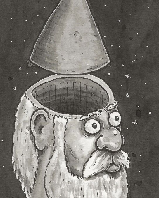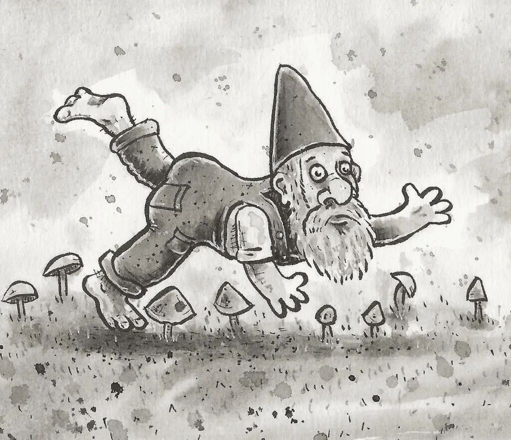 Gnome tripping on mushrooms #inktober #inktober2022trip #drawing #inkdrawing #inkwash #blackink #illustration