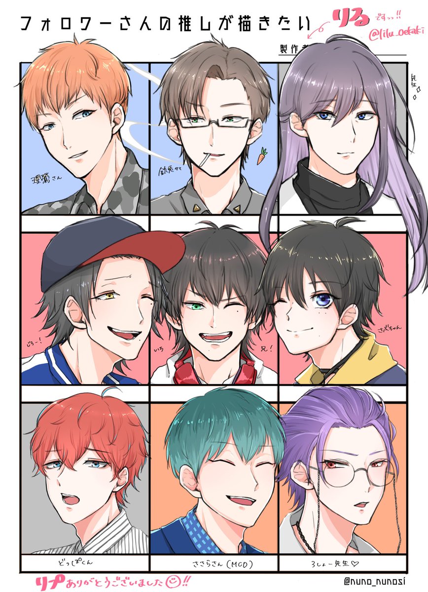 めちゃ時間かかってしまった〜🥹💦 可愛い子ちゃんたちのリクありがとうございました🥰 ヒプマイ縛りで!銃兎様と一兄以外はお初かきだったからまた今度描こうっ😳 #フォロワーさんの推しが描きたい #ヒプノシスマイク #ヒプマイ