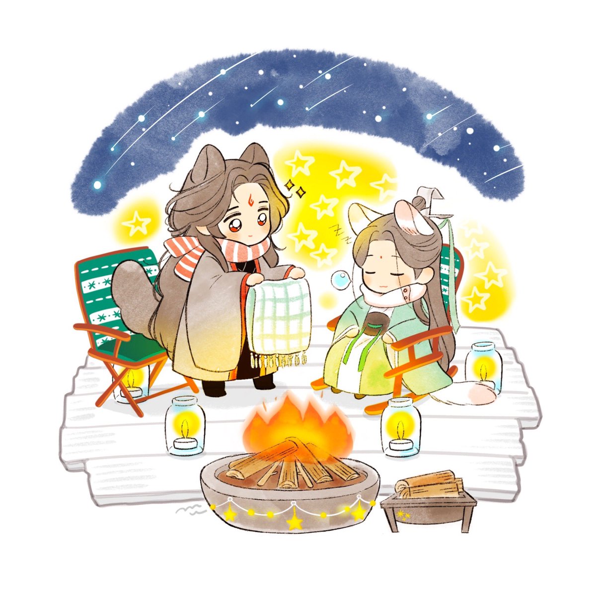 1013 2712 사존과 함께 불멍🔥🐕 소품은 동숲캠 별똥별시리즈🌠 22/12/15 03:48