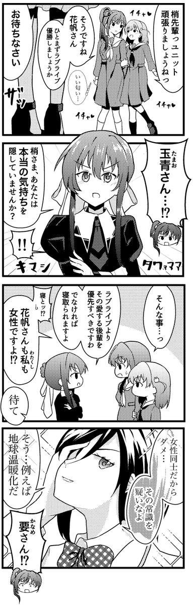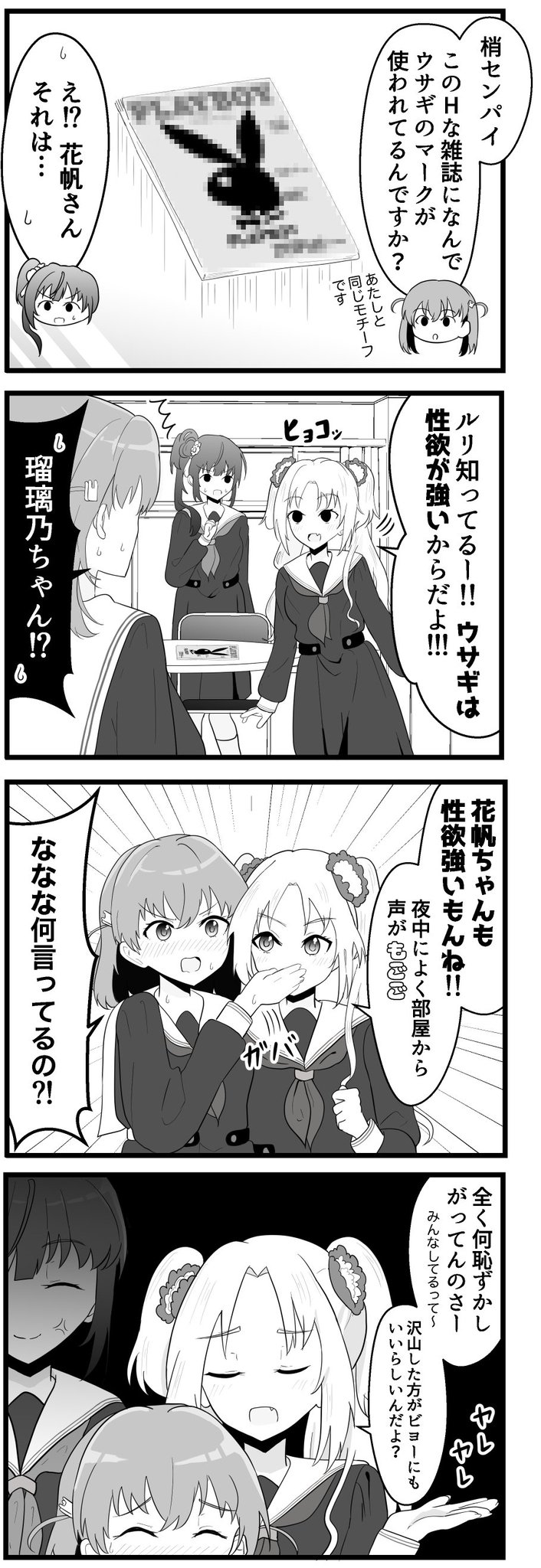 87 335 花帆ちゃんと梢先輩と瑠璃乃の漫画です #あなゆう姉妹 23/06/03 21:24