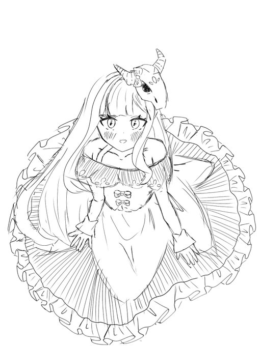 #めめもりアート #めめ村 #イラスト #絵柄が好みって人にフォローされたい #めめ村絵描きさんと繋がりたい 完成した どうしてスカートの縁にフリルをつけようと思ったのか 制作時間 10時間ぐらい