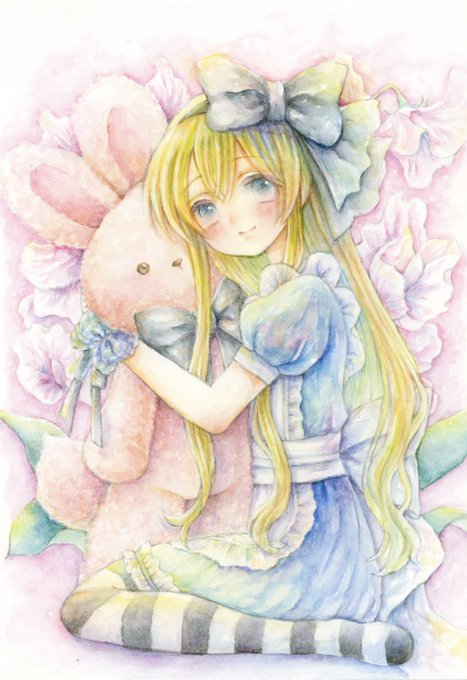 透明水彩と色鉛筆でアリス🩷 #7月16日は七色の人形遣いの日 #7月16日はアリスの日