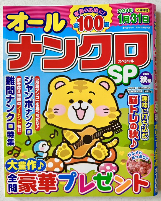 【お仕事】8/12発売🎉 オールナンクロSP秋号(コスミック出版さま) 表紙イラストと、初めて巻頭のイラストヒント付きナンクロの挿絵も担当させて頂きました✨ 今号は秋を楽しむトラさん🐯🐿️🍂 よろしくお願いいたします✨ その他作品はこちら🎨 lily-illustration.com #イラスト #illustlation