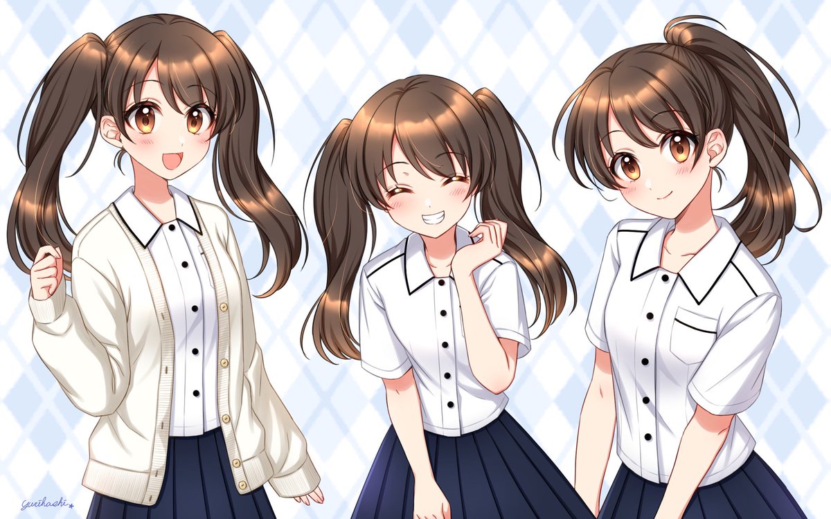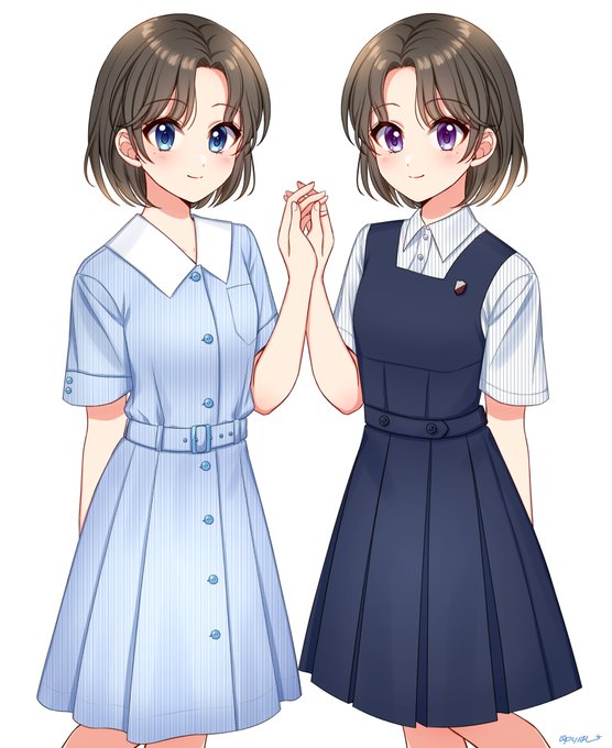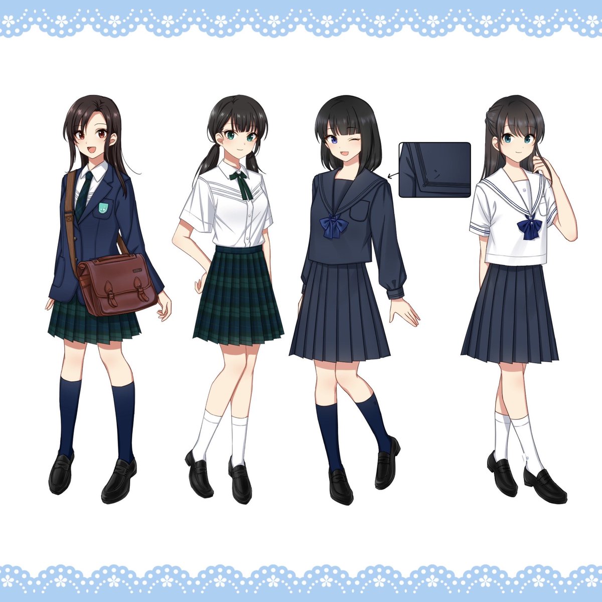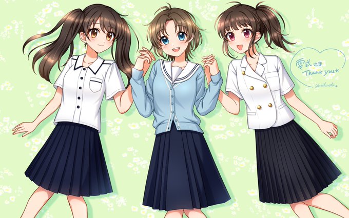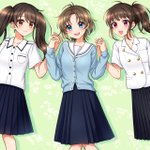 Skeb納品いたしました🍀パイピングが特徴的なブラウス、水色のカーディガンを合わせたセーラー服、金ボタンが珍しいブラウスの3着です♪どれも可愛いです!ブーストもありがとうございました♪ skeb.jp/@lilyringo33/w… #Skeb #Commission @skeb_jpより