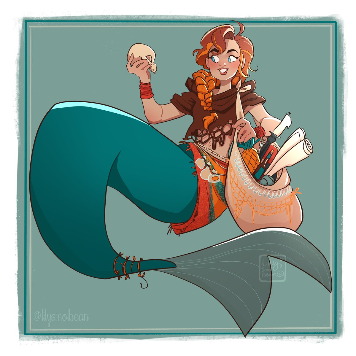 Day 22: Bones She mourns the loss of each creature under the sea. #mermay2022 #mermay #bones #mermaid #art #oc #characterdesign #illustration #digitalart #procreate