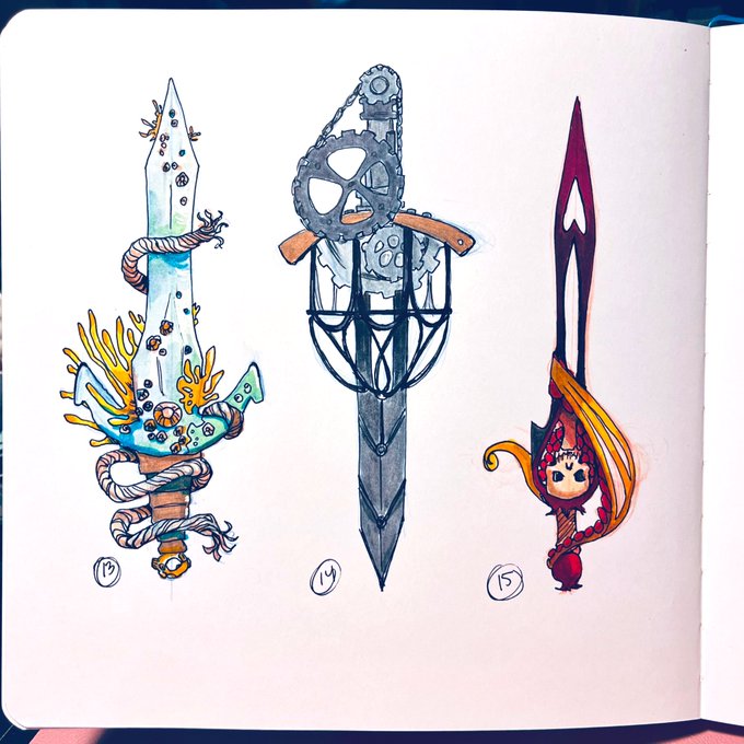 19. Needle The most accurate weapon on display 20. Bee While looking too heavy to carry, the wielder will have no trouble carrying this weapon 21. Decay Legend says that this ancient blade wards off enemies #swordtember2022 #swordtember #needle #bee #decay