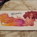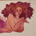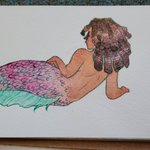 My second watercolor babe for #mermay2021, posted belatedly because I'm a dumbdumb. This series is a rainbow of women and colors and things and I love it. Also, hair is heckin delightful to draw and paint omg. #naturalhair #mermaid #fantasyart #watercolor #artistontwitter #mermay