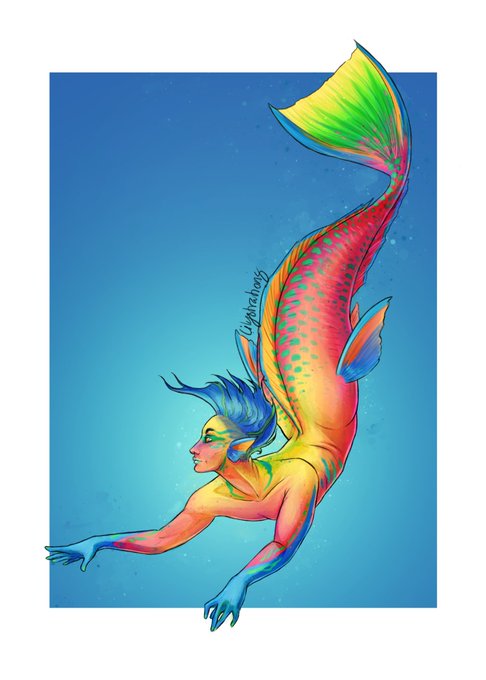 My final digital #mermay2021 for this year, the transgender Parrot Fish Merman. I love how this guy came out, and how nostalgically Lisa Frank he feels... 😂💙🧜♂️ #artistontwitter #digitalart #mermay #photoshop #digitalartist #fantasyart #lgbtq