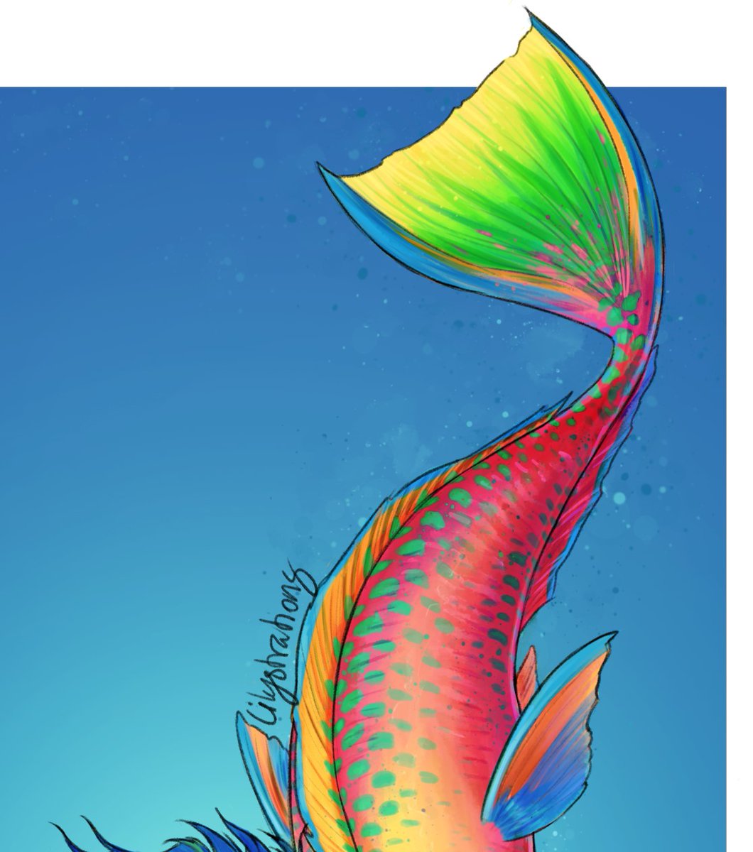 I didn't know Arowana fish existed until animal crossing. 👀💛🧜🏻♀️ #mermaid #mermay #art #artistsontwitter #fantasyart
