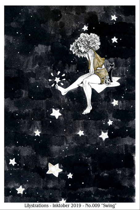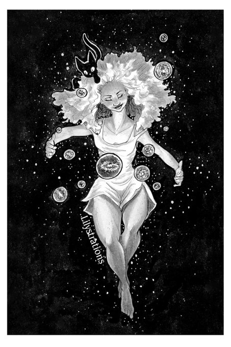 Flashback Friday to an #inktober 2019 piece I did featuring my as of yet unnamed star witch and her trouble making friend. #art #artistsontwitter #inkart #spacewitch #helpsheneedsaname