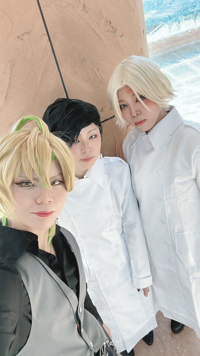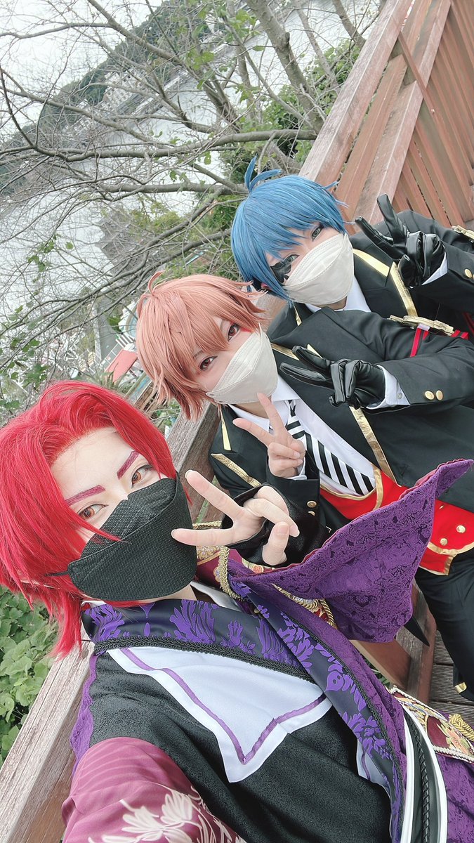 2 27 ジャケット忘れた一二三とイヌココちゃんたちでいます!(みんな男の子でよかった……) 防寒でパーカー借りたのでパーカー着てるかもです💦 よろしくお願いします! #コスフロ 22/10/29 11:54