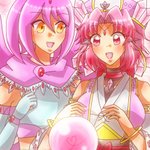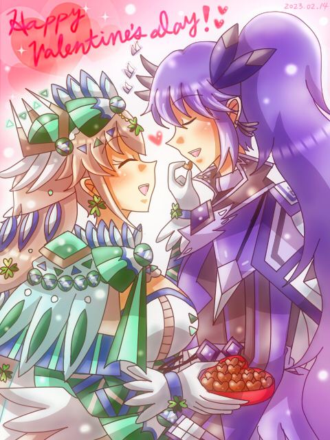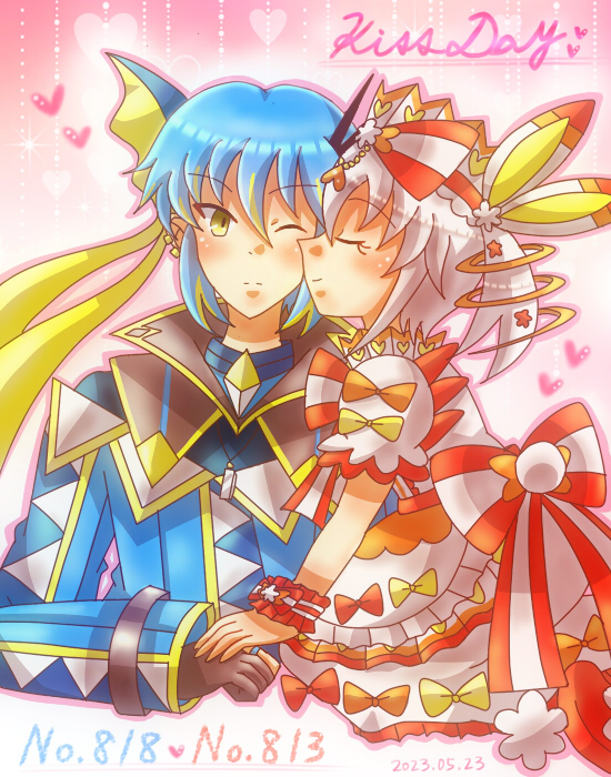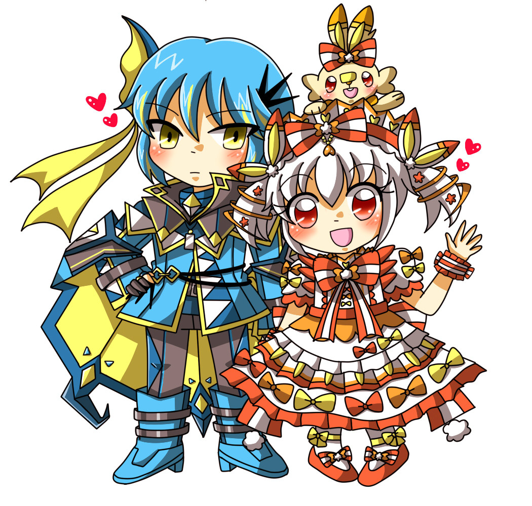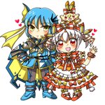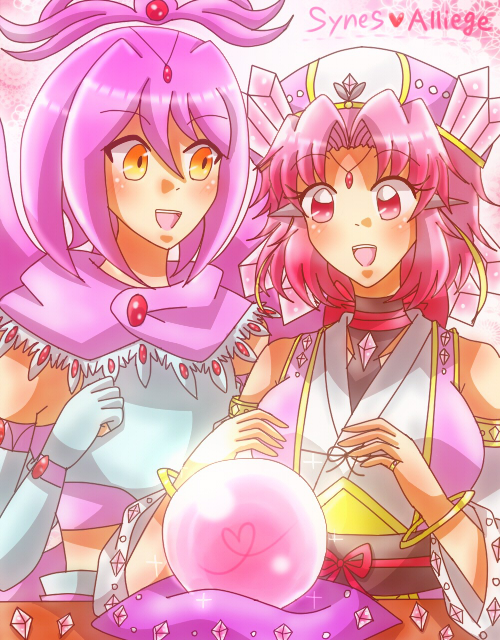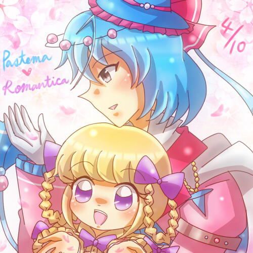 パステマ(鰤無音♀)× ロマンチカちゃん(まほいぷ♀)!⚔🧙♀️🎀🎂 騎士×お嬢様のうちよそおねロリ主従百合のパスロマちゃん!!💙💗💜 主従の日にフェアリーお題とか絶対描くしかなかった!! #pkgドローイング