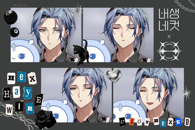 캡쳐보고 참을 수 없어서 이런거 만들었어요 바로바로 버생네컷~!~!! 문제시 바로 지우겠읍니다••• Photo booth picture kinda thingy📸 #Hexhibition