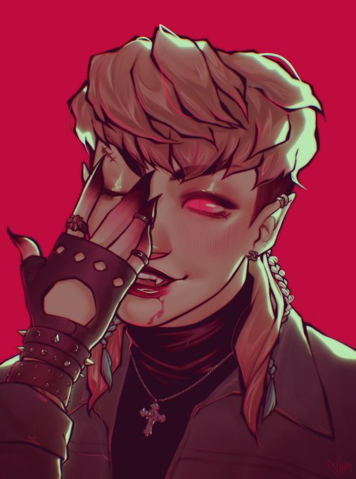 the hullet, the little vampire fangs, yes this was very self indulgent #ATEEZ #ATEEZfanart #HONGJOONG
