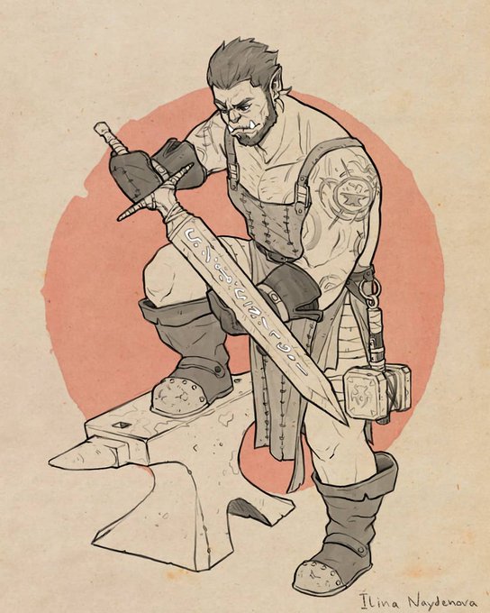 For #Inktober2019 Day 14 I drew a orc blacksmith to complete the family from yesterday. #Inktoberday14 #WoWClassic #dnd5e #DnDcharacter #oc #ArtistOnTwitter #fantasyart