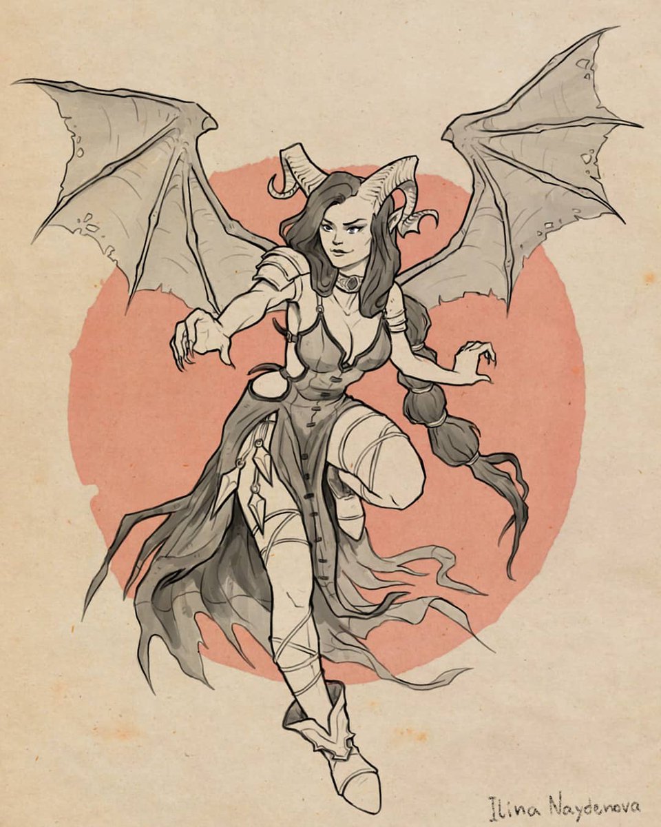 #Inktober2019 Day 11! This time it's a sexy demon girl flying about. I'm already past 1/3 of the challenge and it feels really good to have come this far! #inktober #inktoberday11 #fantasyart #dnd #dndcharacter