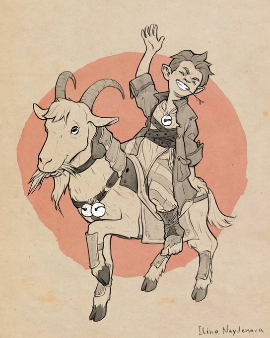 #Inktober2019 Day 12 finished! I'm a big fan of @EvenMAmundsen's drawing of characters with companions and I wanted to draw something similar (I also think goats are cute and silly). So here is a halfling and his pet. #Inktoberday12 #dnd #DnDcharacter #ArtistOnTwitter