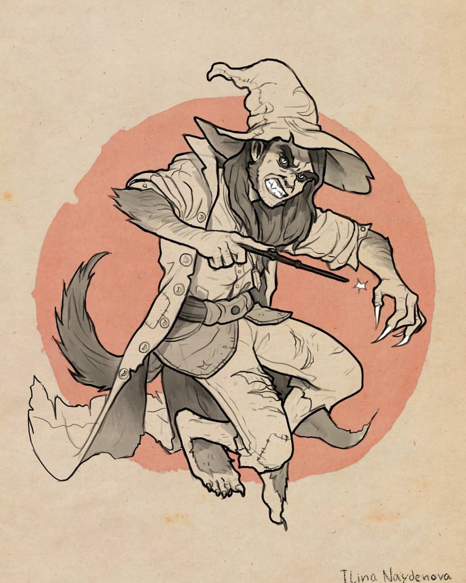 Today for #Inktober2019 Day 27 I’m posting this drawing of a wizard werewolf I did. I wanted to combine both ideas and I thought I was being original until I remembered Remus Lupin 😂 #inktober #inktoberday27 #fantasyart #dnd #dndcharacter #werewolf #wizard