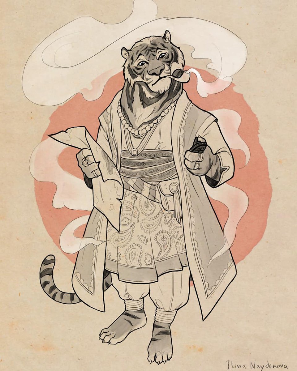 #Inktober2019 Day 18 finished drawing of a navigator Rakshasa (tiger man). 🐅 He's looking at his compass but where do you think he is headed? #inktober #dndcharacter #dndart #dnd #characterdesign #fantasyart #furryartwork