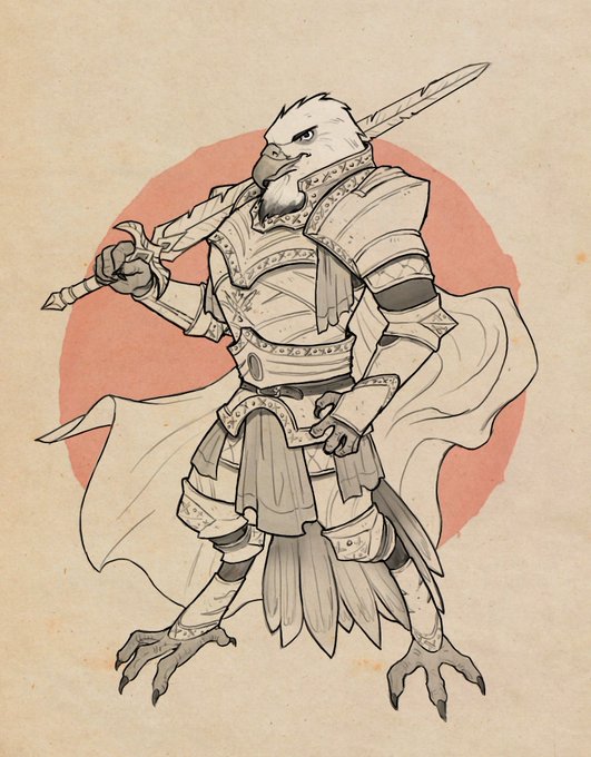 #inktober2019 Day 23 is finished 🦅 Drew a proud bald eagle paladin (Aarakocra). This one was challengeing and it took me forever to get the sketch right but I'm liking how it turned out. #inktober #inktoberday23 #dndcharacter #dnd #dnd5e #characterdesign #artistsontwitter