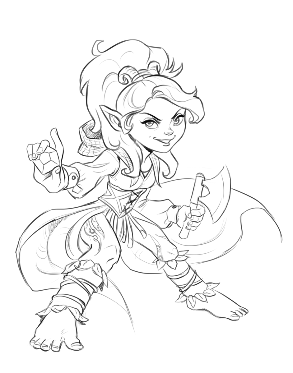 This character is a commissioned halfling thief named Beanie. The client reached out because he loved an old design of mine so we blended it with personalized details into a new creation. #fantasyart #DnDcharacter #illustration