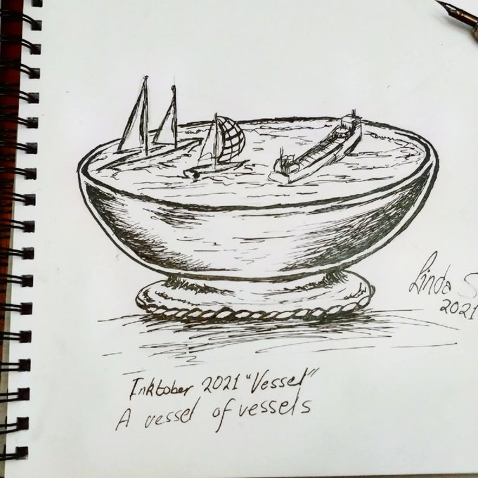 #Inktober #inktober2021day3 #inktober2021vessel #inktober2021 Vessel has many meanings. This is a vessel of vessels. Each vessel is a vessel for something personal. Left is the big sailing ship I visited in Goderich -The Oriole. I think it was love at first sight. Never felt