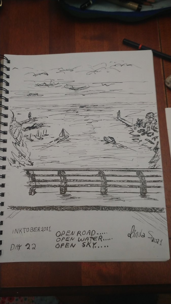 #inktober2021 #Inktober I had a lot of trouble with the word open. I made a list of open phrases. Ultimately road, air and water stood out. This is the Southampton bridge with all three. #inktober2021day22 #inktober2021open #inktober2021day22open