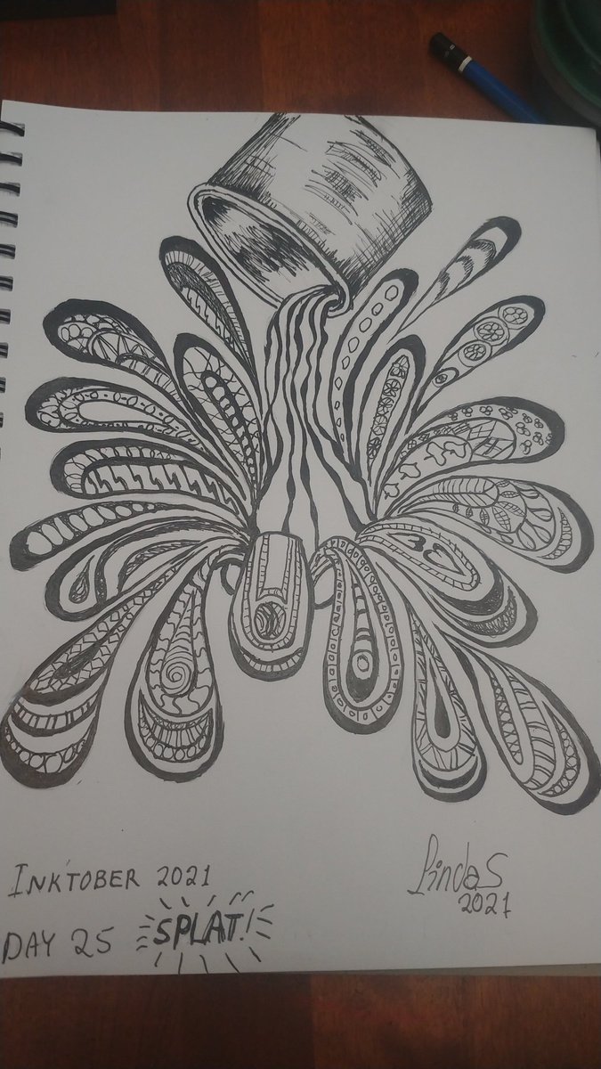 #inktober2021 #inktober word of the day is SPLAT! I did a splat of paint as it's poured. This was an extremely satisfying picture to do. Drawing keeps me off my broken foot so it should heal quickly. #inktober2021day25 #inktoberday25splat #inktober2021splat