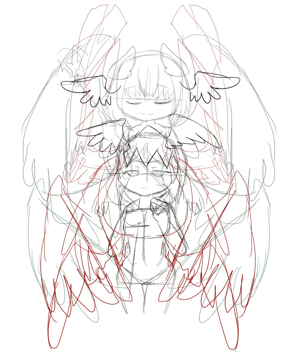 #このタグを見た人はラフ画とその完成絵を見せる 普段は線画完成しちゃうとラフ消しちゃう派なんでこれしかなかった