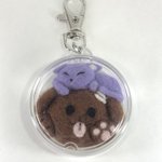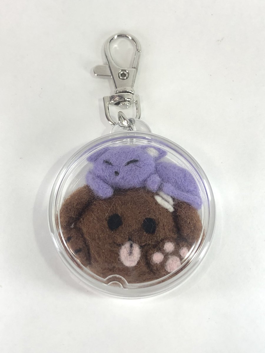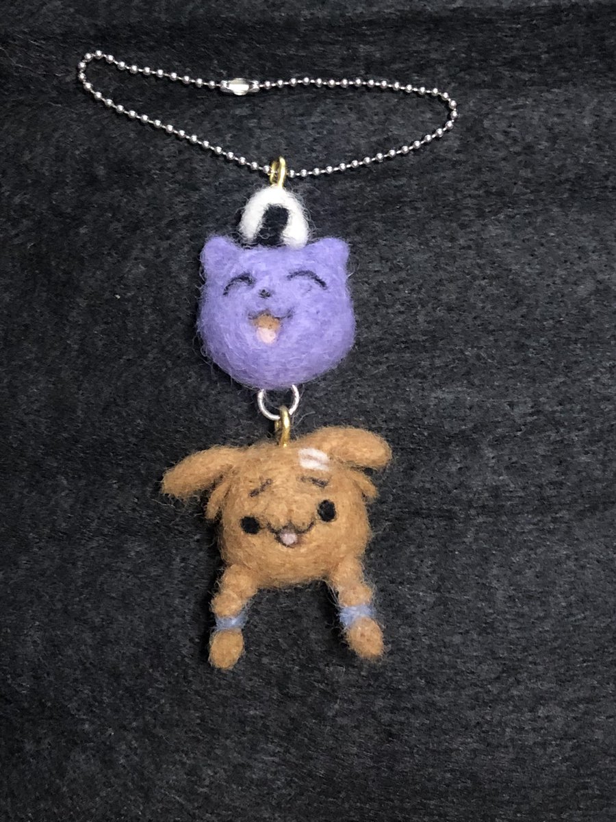 #できたてころね #絵かゆ 羊毛フェルトで、100均キーホルダーに毛玉おかころ入れてみた。ギュウギュウ…