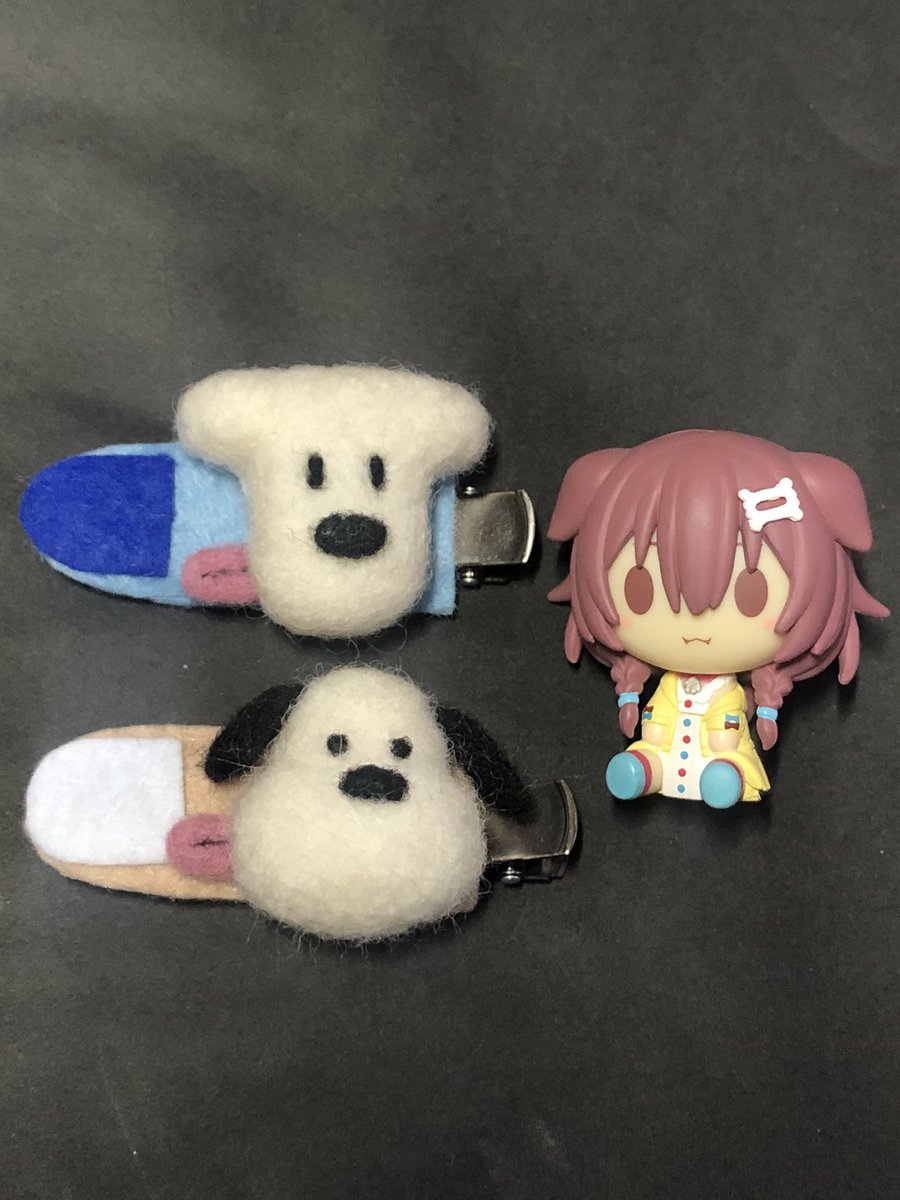 7 28 羊毛フェルトで、ころさんのフトイヌ・ホソイヌヘアクリップ。YUBIYUBI☝️ #できたてころね 23/03/08 17:31