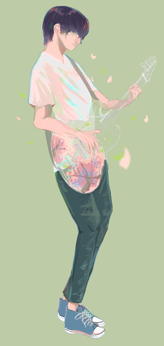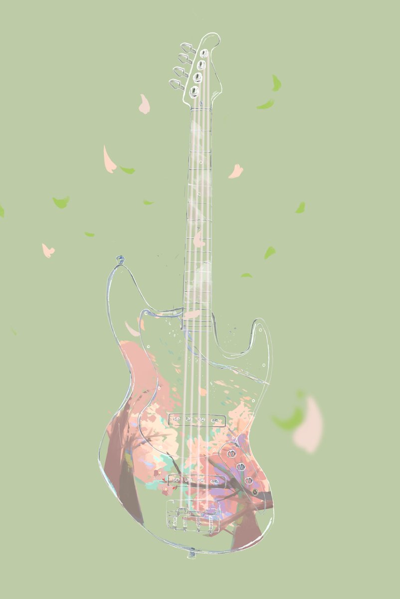 ベースと桜雨と空と #イラスト #illustration