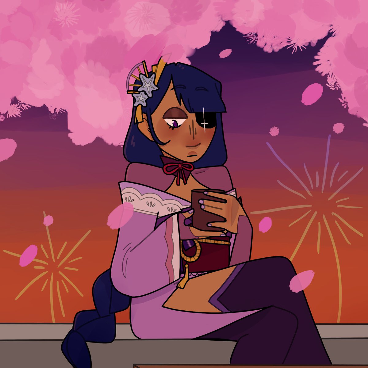 spiritually they are watching fireworks together in my teapot [#ayaka #yoimiya #genshinimpactfanart #ayamiya #yoimiyaka]