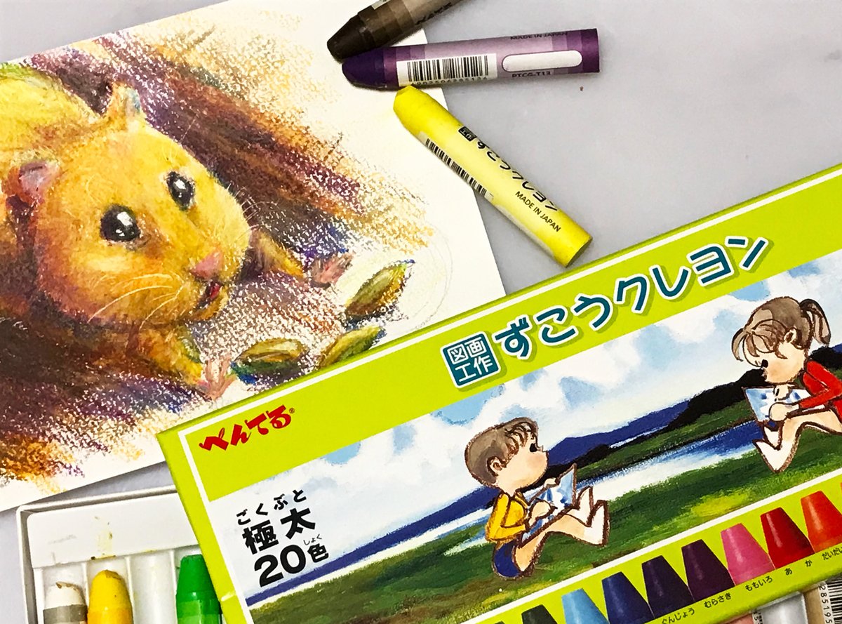 以前クレヨンで描いた時に古くて臭いが凄かったので、新たに購入しました!(今回はぺんてる) 練習でハムスターっぽいものを描きました。 ぐりぐり描くの楽しい🖍️ #イラスト
