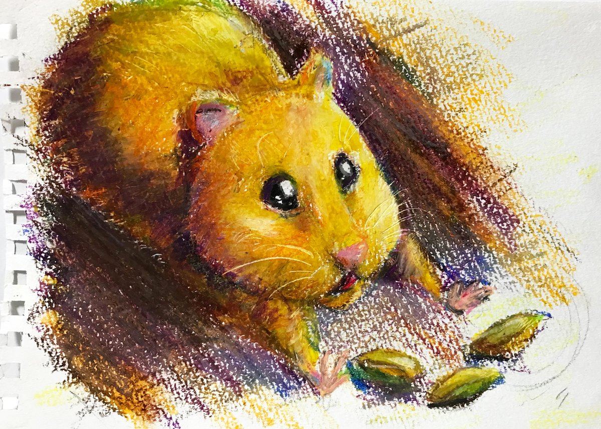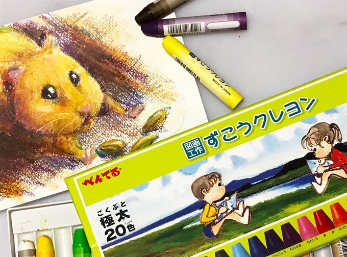 7 36 以前クレヨンで描いた時に古くて臭いが凄かったので、新たに購入しました!(今回はぺんてる) 練習でハムスターっぽいものを描きました。 ぐりぐり描くの楽しい🖍️ #イラスト 22/02/11 21:38