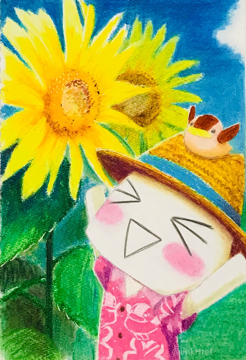 11 81 ひまわりが咲いたのニャ! クレヨンで描きました🖍️ #どこでもいっしょ 22/08/22 16:23