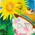 ひまわりが咲いたのニャ! クレヨンで描きました🖍️ #どこでもいっしょ