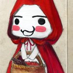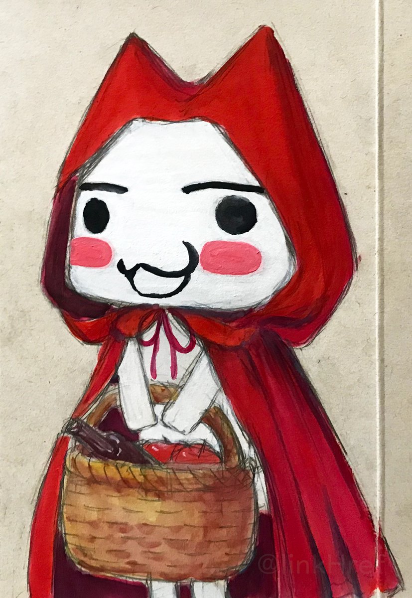 赤ずきんトロ。 お菓子の箱の裏に顔彩で落書きしてみました! #どこでもいっしょ #イラスト