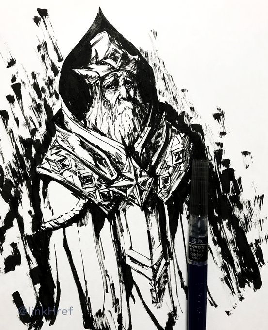 新しく買ったぺんてるの筆ペンでパレルモの落書き。 なんか邪悪になっちゃった。 あと一枚で神話だけど選択ガチャ待ち…… #AFKアリーナ #イラスト