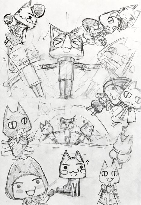 鉛筆でトロの落書き。 イチゴなデザイン考え中🤔