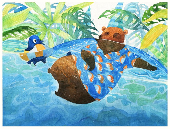 Swimming~ Chips🐦&Choco🐻 水泳〜 チップス🐦とチョコ🐻 #イラスト #絵 #画 #アート #美術 #スケッチ #一日一絵 #イラスト好きな人と繋がりたい #水彩 #動物 #illustration #drawing #painting #sketch #sketchbook #artwork #visualart #picoftheday #fineart #animals #childrensillustration