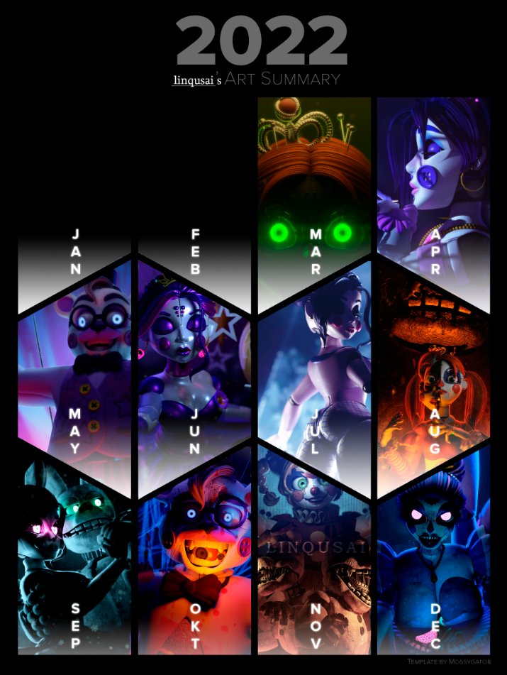 MY ART SUMMARY 2022 I THINK I IMPROVED A LOT SINCE MARCH! I LOVE THE PROGRESS, AND HAPPY INCOMING 2023 GUYS! THANKS FOR BEING WITH ME AND SUPPORTING ME LOVE YALL! #fnaf #fnaffanart #fnafsecuritybreach [#linqusai]