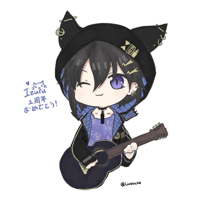 イヅルくん一周年おめでとうございます!💜💙🎸 #イヅル描いたぞ