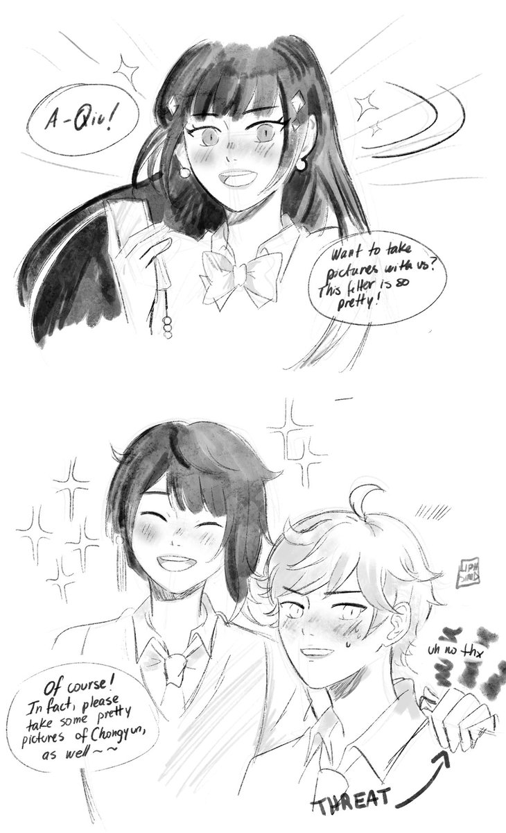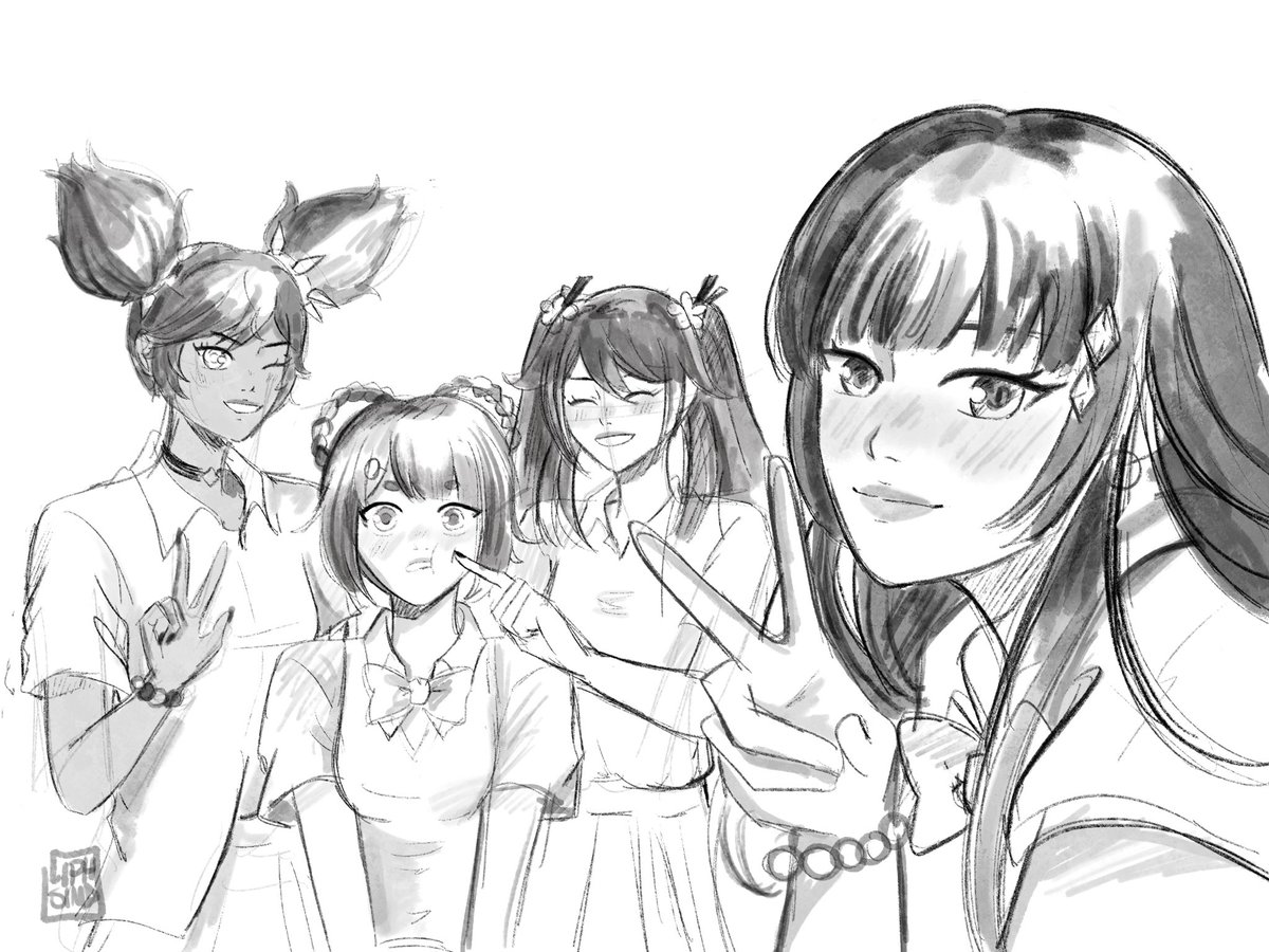 Liyue High School AU sketches ✏️ with a sprinkle of #xingyun in between! #xinyan #xiangling #hutao #yunjin #genshinimpactfanart #chongqiu