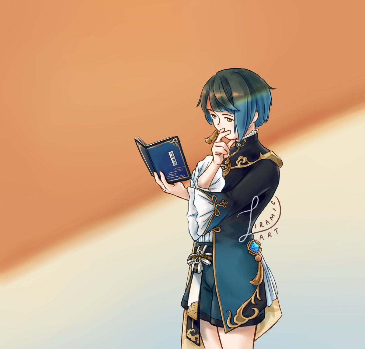 Look at him reading that book (the title reads "Xingqiu bb" in Chinese :) 行秋宝贝!!(注意他的书名😉) #GenshinImpact #Xingqiu #genshinimpactfanart