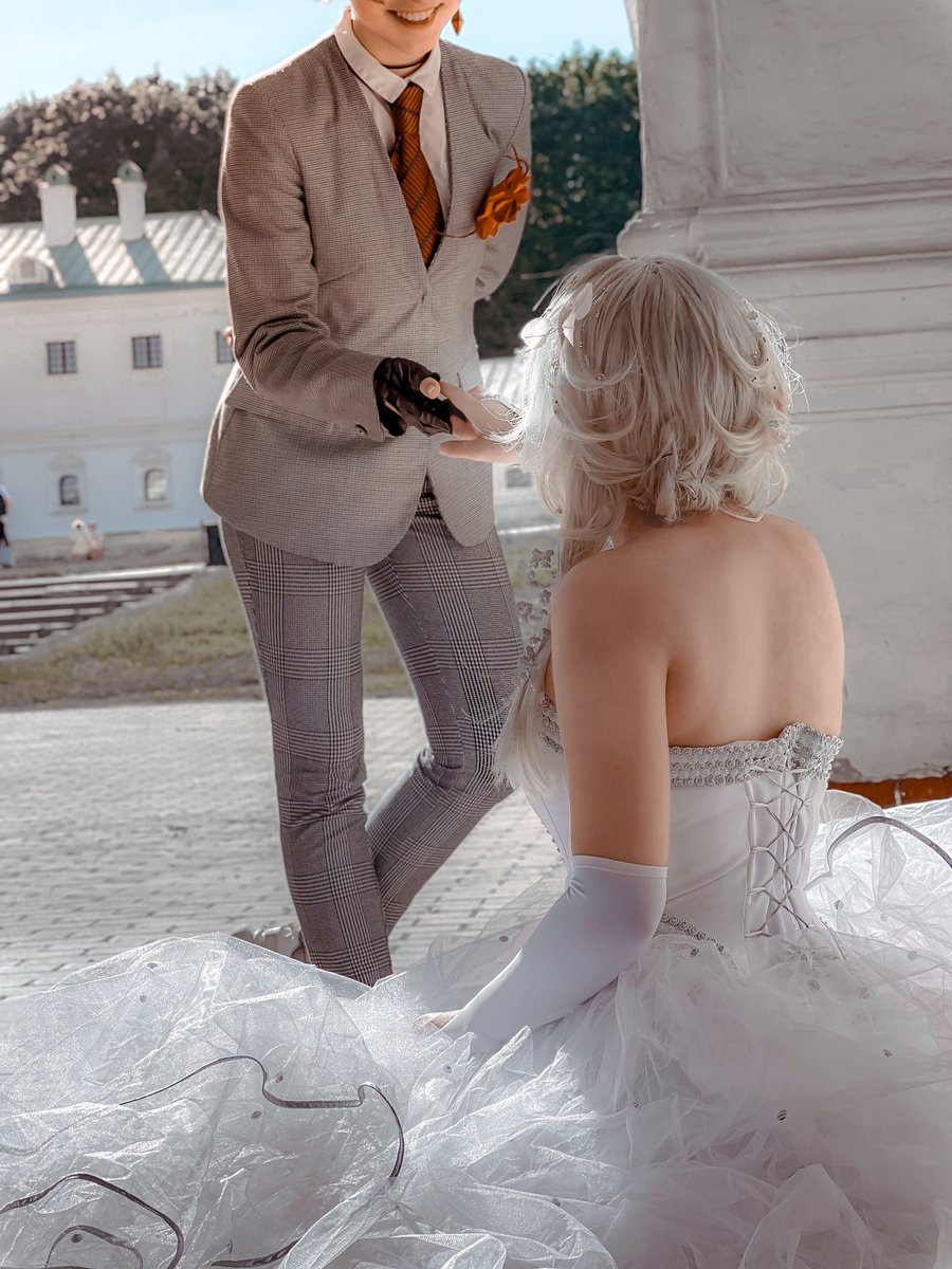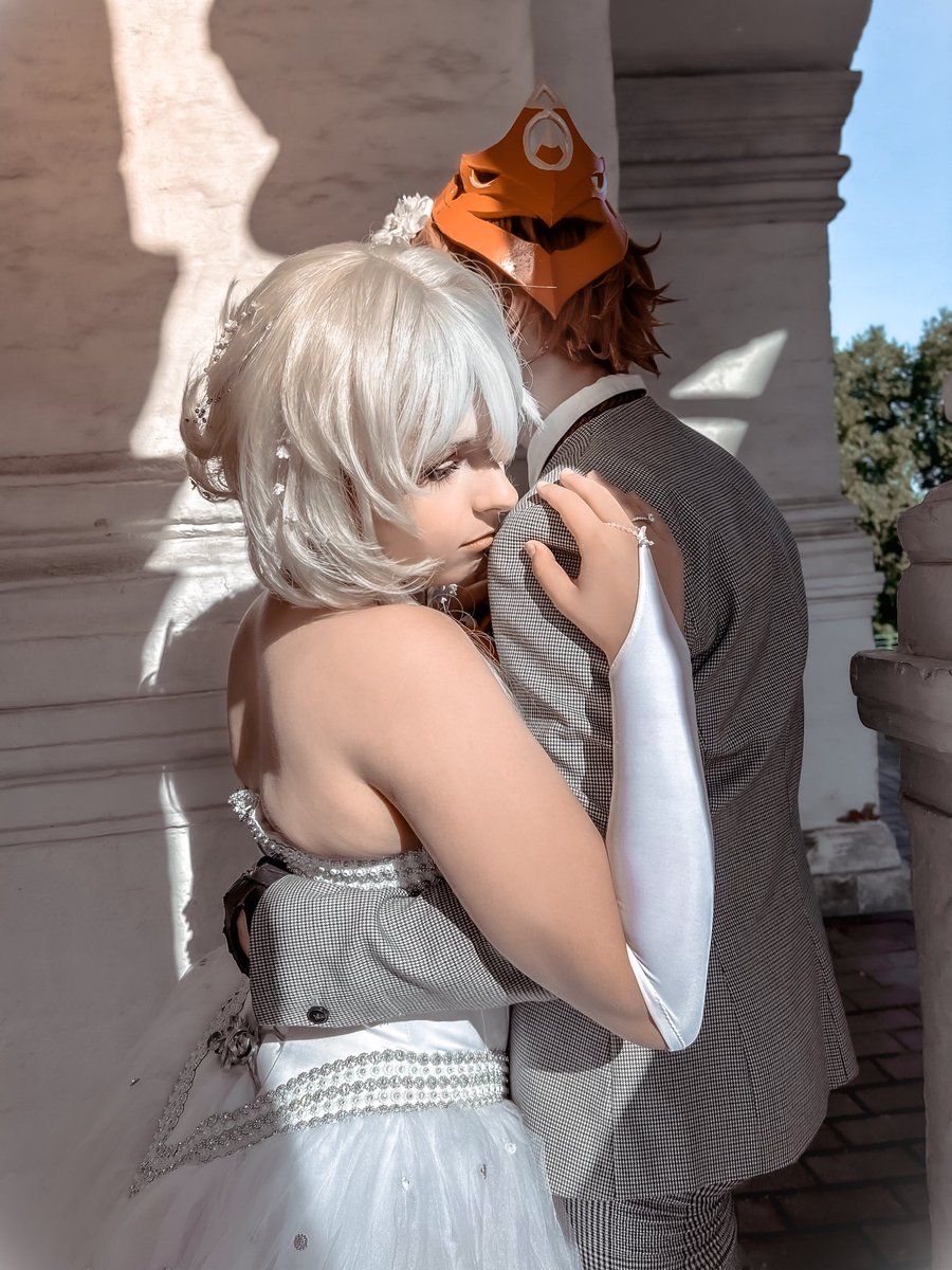 "Her light was brighter than the sun, and the rays were reflected in the diamond on the ring and my soul." . retouch and tartaglia: iris_kae_ (inst) lumine: _lira.ilia_ (inst) ph: @rmeow_ . #genshinimpact_au #cosplay #tartaglia #lumine #chilumi
